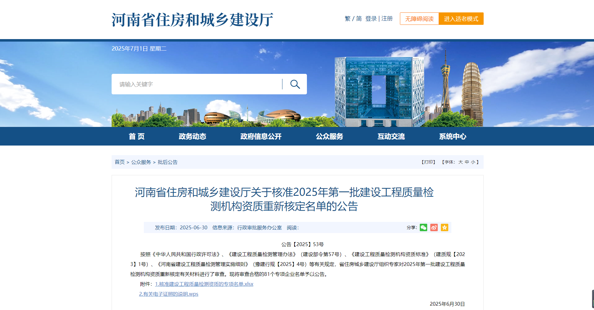 • 熱烈祝賀我司通過河南省住建廳2025年第一批建設(shè)工程質(zhì)量檢測機構(gòu)資質(zhì)重新核定!!!